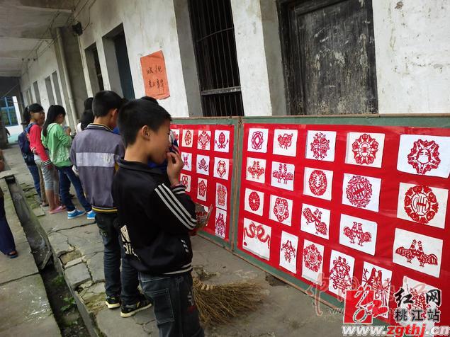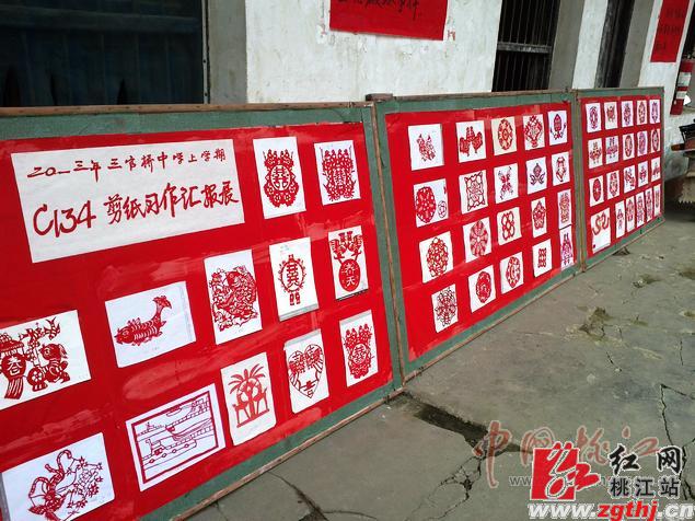 红网桃江5月21日讯(分站记者 吴慧彬 陈霞)5月20日,修山镇三官桥中学134班学生在校园举行了“剪纸习作汇报展”,引起轰动,100多幅精巧的剪纸作品吸引了全校师生和群众的目光,观者无不啧啧称赞。
