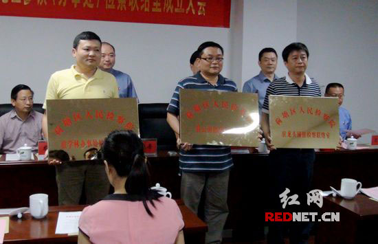 红网株洲5月31日讯(分站记者 青琪 通讯员 刘亮 易莱香)今天上午,湖南株洲荷塘区检察院驻云田镇、龙头铺镇以及学林办事处检察联络室正式授牌,这也是该区设立的首批乡镇(办事处)检察联络室。根据规定,乡镇(办事处)检察联络室的工作职责包括开展法制宣传,推进法治建设和“阳光检务”,维护群众合法权益;接待群众来访,接受群众举报、控告、申诉,方便群众司法诉求,收集发现职务犯罪案件线索;收集发现公安机关、法院、行政机关(派出机构)执法不严、司法不公的问题,对诉讼中的违法问题依法由检察机关进行法律监督;开展职务犯罪预防,协助检察机关对乡镇(办事处)公共财产管理、使用以及财政运行情况进行监督等。