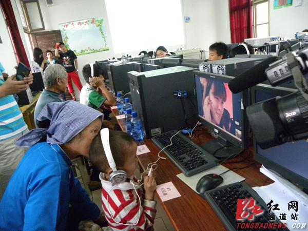学生们通过亲情视频与想念已久的远方父母“对面”通话