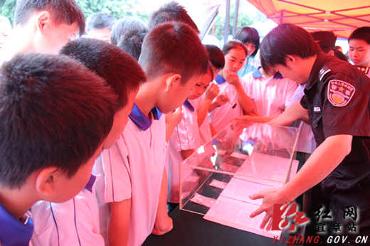 图为民警宣传向学生宣传禁毒知识