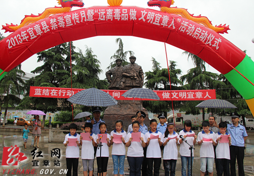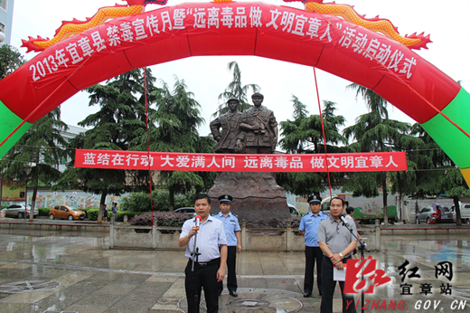 红网宜章站6月28日讯(分站记者 李明华 通讯员 曾菲)蓝结在行动,大爱满人间,远离毒品做文明宜章人。6月26日,宜章县在星火广场举行2013年禁毒宣传月暨“远离毒品做文明宜章人”活动启动仪式。