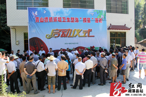 青山桥镇举行农村环境卫生整治“授星”活动启动仪式。