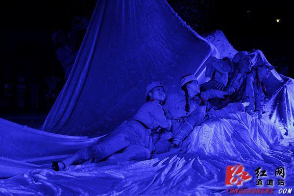 当晚,九源红色歌舞团为观众表演了舞蹈《东方红》、《绣红旗》、《黄河源》,大合唱《四渡赤水出奇兵》,情景剧《十送红军》,舞蹈剧《红军不怕远征难》、歌伴舞《山丹丹花开红艳艳》、独唱等十余个经典红色文艺节目。《红军不怕远征难》、《十送红军》、《映山红》等节目把演出推向高潮,故事感人,深受启发和教育。整个演出精彩不断,博得了观众阵阵掌声。
