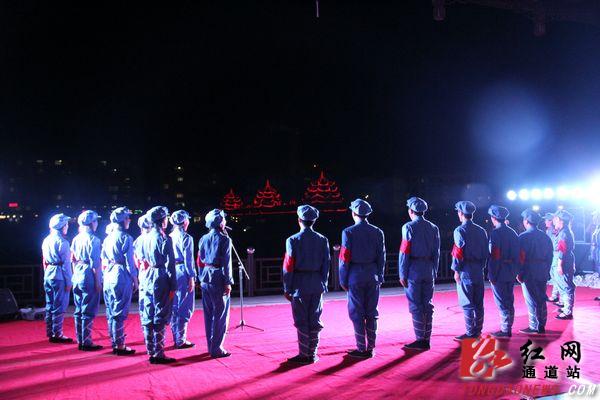 红网通道站7月30日讯(通讯员 粟汇华)7月29日晚,由甘肃省委宣传部组织的九源红色歌舞团主题为“唱响东方红,共圆中国梦”全国公益巡演活动来到通道侗族自治县,为广大市民奉献了一台精彩的红色经典文艺演出。