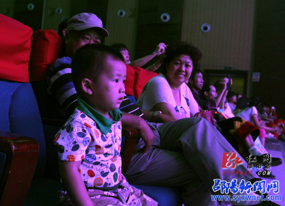 爷爷奶奶发现孙子被精彩的节目吸引,也乐开了怀