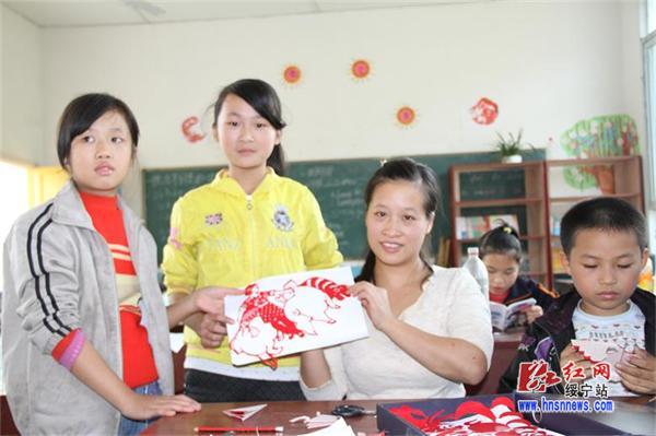 据该校校长唐心发介绍,民间剪纸作为民俗的陪衬,在民间独自顽强地生长,为了更好地让苗乡学生掌握和传承剪纸艺术,谱写苗乡民族艺术史上新的乐章。该校从1996年开始,将剪纸艺术引进课堂教学,从小学一年级开始上手工制作课,小学三年级开始上剪纸课,采取课堂上老师手把手教学生,课余时间高年级学生教低年级学生,一届学生传、帮、带另一届学生的多种方式,开展剪纸教学活动。学校毎期开展一次剪纸比赛活动,毎月开展一次剪窗花布置教室、寝室评比活动,丰富学生教室、寝室文化内容。既培养了学生动手动脑能力,又美化了校园生活环境,陶冶了师生性情,传承和发扬了绥宁苗乡民间文化。