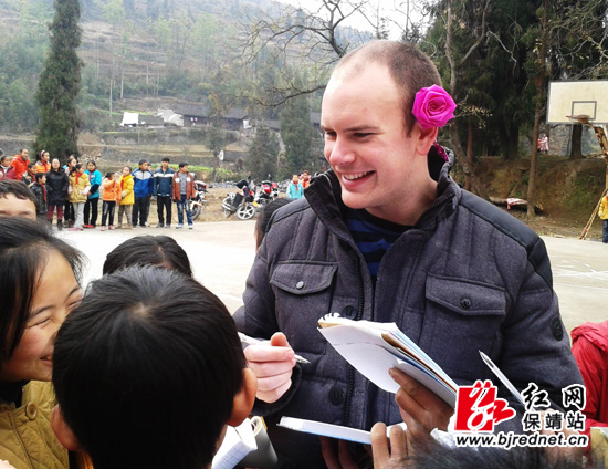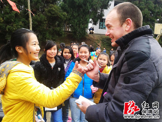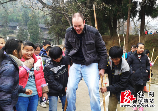 红网保靖站12月24日讯(通讯员 向红星)近日,保靖县花桥中学师生与两位外国友人一起度过了开心而难忘的4小时。在保靖民中和教育局的大力支持下,民中的两位外教如期到来到该校,师生们与外国友人在操场上英语口语对话、唱英文歌、踩高跷、鞭陀螺、做游戏、拼球技,在游戏中学习,在学习中玩乐,校园中洋溢着欢笑。
