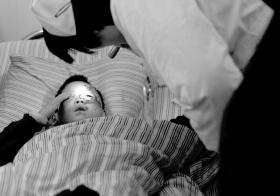 12月23日,省直中医医院,病床上的帆帆在接受检查。陈杰/摄