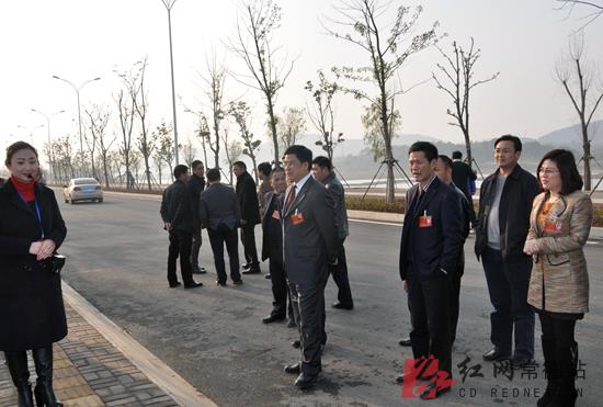 昨日下午,400多位市人大代表分别从下榻的酒店出发,先后视察了鼎城区金霞路、善卷路,常德经开区德山中路,朗州北路与二广高速互通工程及市城区武陵阁地下停车场等“三改四化”重点工程。