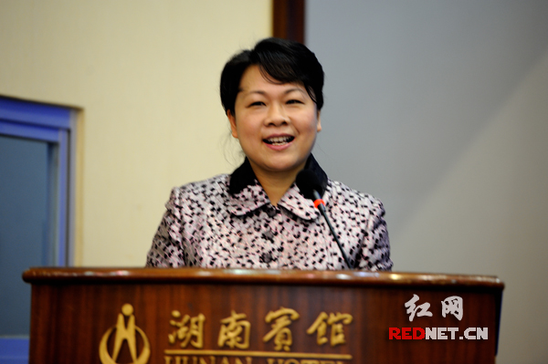 (湖南省妇联主席肖百灵在会上致辞。)