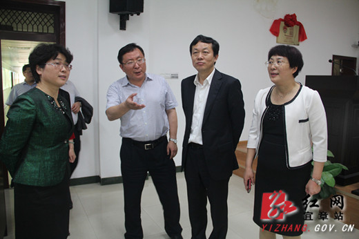 (湖南省委宣传部副部长、省文明办主任宋智富[右二]一行参观宜章县检察院。)