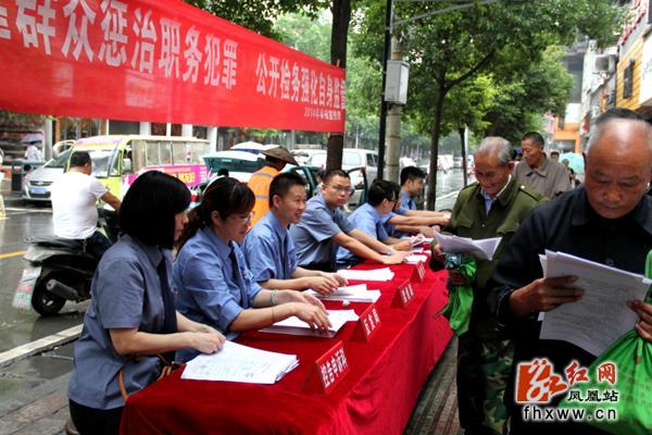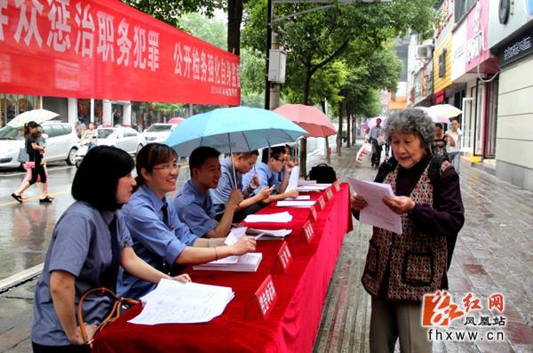 红网凤凰站6月25日讯(通讯员 田洪平 欧阳凤湘 胡明智) 6月24日,凤凰县检察院围绕“依靠群众惩治职务犯罪,公开检务强化自身监督”的主题,走上街头,受理群众举报投诉,现场解答群众咨询,正式拉开全国第十六个“举报宣传周”活动序幕。