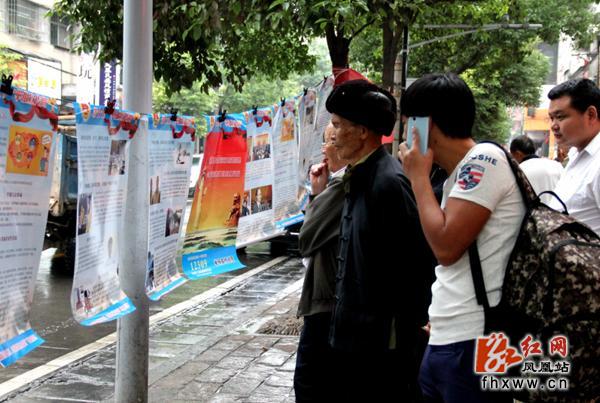 群众驻足浏览宣传海报