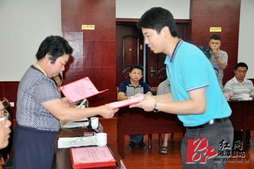 湘潭县政协主席王惠芳(左)向15名政协委员颁发委派证书。