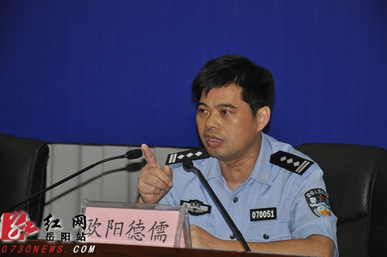 岳阳市公安局党委委员、政治部主任欧阳德儒回答了记者的提问。