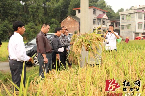 红网城步站9月18日讯(分站记者 刘令 实习记者 吴文雅) 9月17日,越南国家农业科学院副院长陈文定一行来到城步苗族自治县西岩制种基地,现场考察西岩镇农帮水稻种植开发合作社种植的荆两优1198,Y两优096的生产情况,对这两个水稻品种非常满意,表示将认真论证,引进推广。