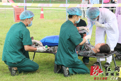 医疗救援队队员到现场抢救病人。解巾英 摄