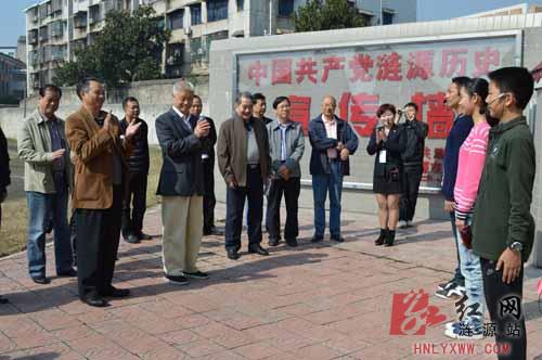 湖南省调研组到涟源调研党史和党史联络工作,到蓝田中学实地察看党史宣传墙,听在校学生讲解党史。