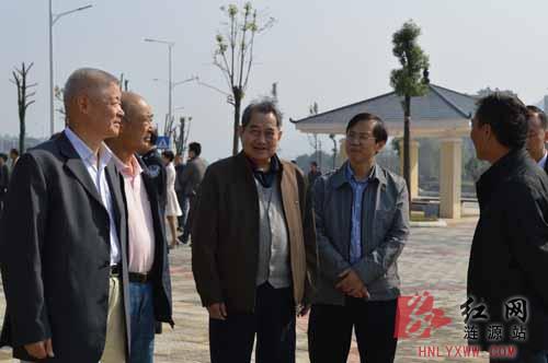 湖南省党史联络组邵娄片组组长、省委统战部原副部长王焕明(右三),邵娄片组副组长、省林业厅原厅长葛汉栋(左一),邵娄片组成员、省政协社会和法制委员会原主任欧阳耀祥(左二),在涟源市委书记曾益民(右二)陪同下,在涟水河风光带调研。