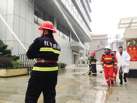 本报讯(记者 李卓)一股股呛鼻的橙色浓烟从6楼窗口滚滚涌出,浓烟中有两人从窗口伸出手来,挥舞白毛巾尖声呼救……昨日下午4时,红星商圈内的红星实业大厦6楼惊现这样一场“火灾”,红星商圈志愿消防队闻警即动,赶在专业消防队员出马前及时扑灭“大火”,救出被困人员。