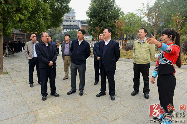 红网永顺站11月25日讯(分站记者 余光龙)11月24日,广西省桂林市委书记、市人大常委会主任赵乐秦率党政代表团到永顺县考察。赵乐秦一行在湘西州委书记叶红专,永顺县委书记石治平等州县领导的陪同下深入芙蓉镇,参观了全国重点保护文物——溪州铜柱,五里青石板街及两旁土家民居吊脚楼等文化旅游产业,土家族民俗特色的千年古镇给代表团留下深刻的印象。