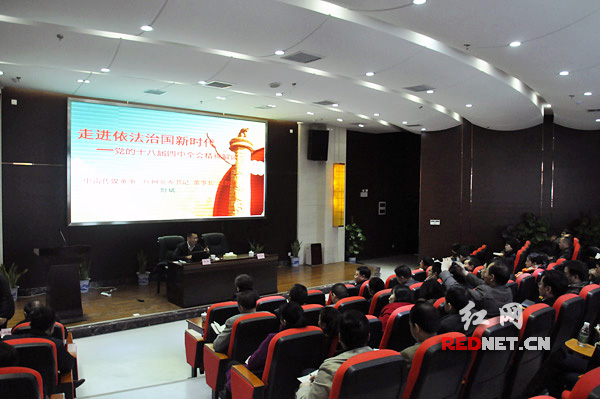 党的十八大代表、中南传媒董事、红网党委书记、董事长舒斌应邀作“学习贯彻党的十八届四中全会”专题辅导报告。