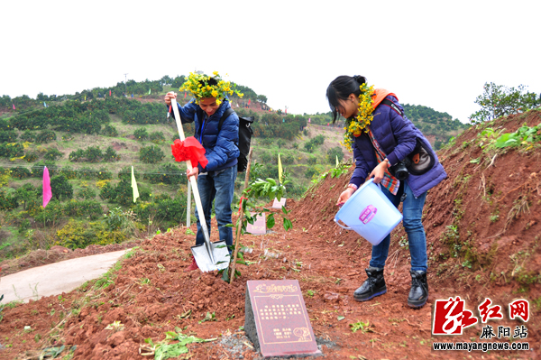 赵坤、陈红薇夫妇在栽种他们的爱情树