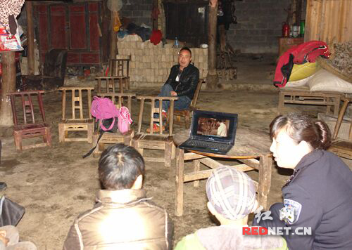 凤凰县人口少,24个乡镇分布分散,尤其是最偏远的苗区腊尔山镇两林乡,距县城近40公里。为了禁毒宣传不落下一个角落,3月26日上午,凤凰县公安局十余名女警组成女子禁毒宣传队,以“禁毒志愿服务宣讲员”的身份深入苗区腊尔山,依托精通业务、熟悉苗语的优势,在山村里入户宣讲、发放资料、集中播放禁毒宣传片。