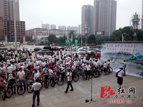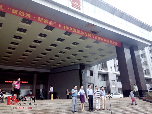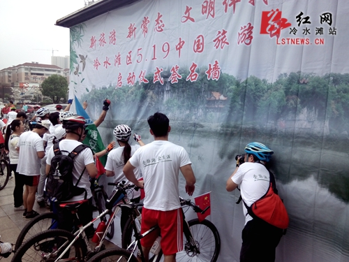 红网冷水滩站5月19日讯(通讯员 周小荣 胡云峰)5月19日上午8:30,冷水滩区政府广场前,一群骑行爱好者正整装待发,两杆印有“新旅游新常态5·19中国旅游日”的红旗在队列前迎风招展。永州市冷水滩区文新旅局为庆祝第五个中国旅游日而组织的“新旅游新常态”5·19中国旅游日骑行宣传活动在此隆重举行。冷水滩区委常委、常务副区长候选人张跃斌,副区长黄燕玲出席启动仪式。区委常委、常务副区长候选人张跃斌宣布骑行活动正式开始。参会的领导、来宾以及参加文明骑行宣传的自行车爱好者纷纷在“新旅游新常态文明伴我行”主题宣传墙上进行签名。启动仪式后,骑行爱好者们分两条线路进行了文明旅游骑行宣传。