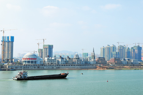 以湘江为界,从东往西看,葱郁的岳麓山下,现代化的大楼鳞次栉比。