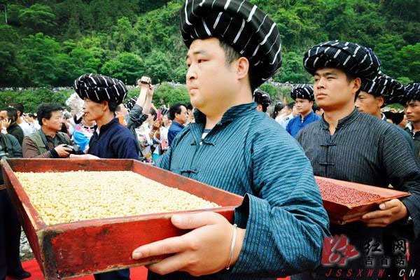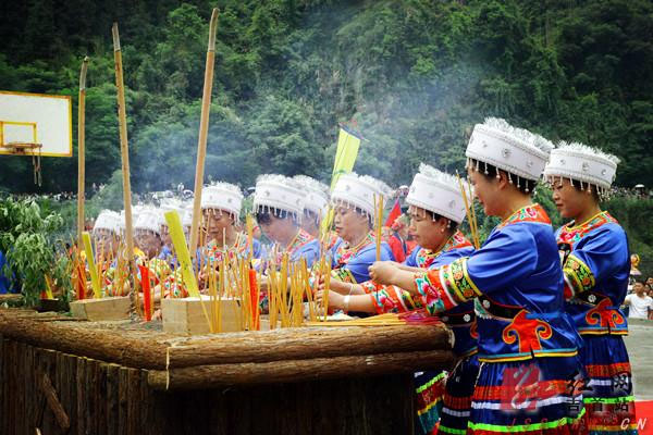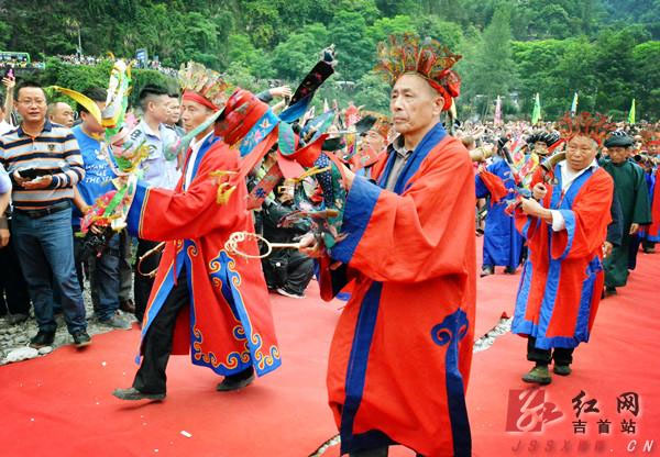 数名“巴岱”(苗祭师)掐着手诀,舞起绺巾,拿出祭起,唱响古老的歌谣,“我们苗族是古老的民族……我们上祭天、神佛,下敬地,求天地保佑苗家……”四月八,是苗族人延续了百年的传统节日。吉首市民族风情浓郁,每年农历四月八这天,吉首地区的苗族百姓都会自发组织起来,着民族盛装,唱苗族山歌,跳苗家舞蹈,欢度自己的传统节日。