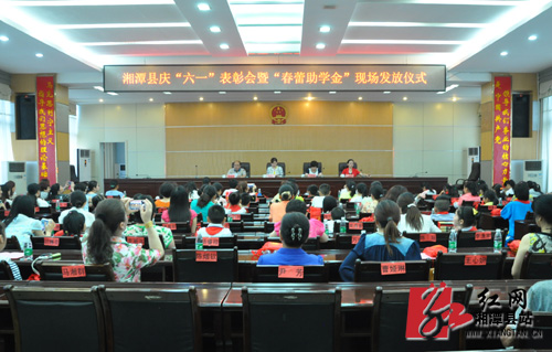 湘潭县举行庆“六一”表彰会暨“春蕾助学”现场发放仪式。
