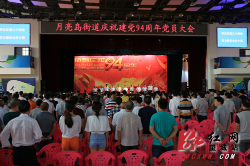 望城区月亮岛街道召开庆祝建党94周年党员大会。