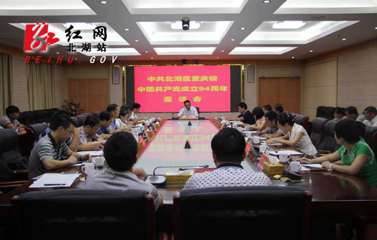 红网北湖站7月2日讯(分站记者 梁俐佳 袁媛 欧阳希)7月1日,郴州市北湖区委召开庆祝中国共产党成立94周年座谈会。区委书记欧阳建华出席并讲话,区委副书记黄晨峰主持,区委常委、组织部长、统战部长陈剑及全区乡镇(街道)党(工)委书记、拟表彰的优秀农村(社区)党组织书记参加。