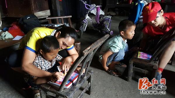 红网凤凰站8月28日讯(分站记者 吴玉辉 通讯员 王华 卢志富)为切实解决留守儿童学习和生活中的困难,让他们健康快乐成长,8月25日,由凤凰县教育局机关干部及子女组成的志愿者队伍来到吉信镇茶山村,开展“真情真爱,牵手互动”关爱留守儿童活动,给山里的孩子们送去了书包、文具、羽毛球等礼物,助他们快乐迎接新学期的到来。当天,凤凰县教育局“关爱农村留守儿童”暨开展未成年人思想道德建设结对帮扶活动正式启动。该局机关干部子女共与茶山村50名留守学生结成一对一帮扶对子,在生活与学习上给予照顾。