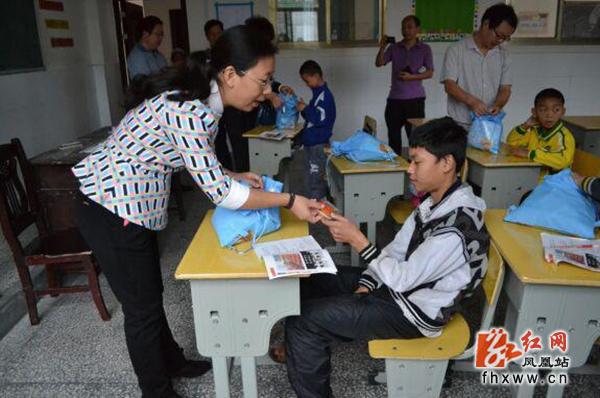凤凰县特殊教育学校在凤凰开班才有一年,全校共有27名学生,目前有3个班,他们有的是聋哑人,有的是智障患者。中秋节即将来临,县妇联和县残联向学生们送去中秋月饼,当他们走进聋哑儿童班的时候,老师正在用手势给他们上课,学生们都礼貌懂事好学,看见大家的到来,都热情的与大家沟通交流;在智障学生教室,一名学生看到礼物非常开心,当收到礼物的时候,他却没有打开吃,而是说要把月饼留给爷爷,大家听了都非常感动。