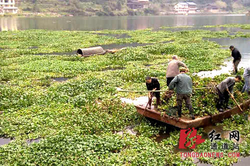 为保障玉带河国家湿地公园天然水域的生态环境,确保人民群众饮用水安全,通道县林业局、移民局联合县溪镇政府自11月初开始对县溪镇境内渠水河流域的水葫芦以及晒口库区的网箱养鱼进行全面清理。截至11月7日,共清理水葫芦300余吨,清理规范网箱养鱼960口,11月中旬将全面完成清理工作。