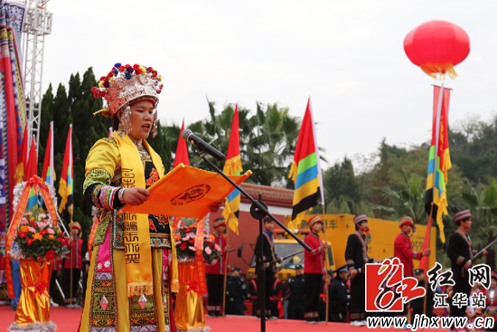 祭祀活动由县委副书记黄志坚担任司仪,县委副书记、县长龙飞凤担任主祭人。上午9时,县委副书记吴恢才宣布祭祀活动隆重开祭。鸣金九响、击鼓九通、鸣号三声,敬献三牲、五谷、百果,明烛。