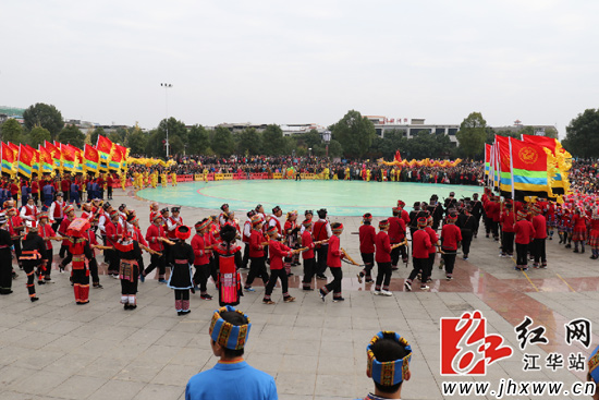 红网江华站11月28日讯(通讯员 杨丁香)盘王吾祖,人神共仰。11月27日(农历十月十六日)上午,乙未年神州瑶都(中国.江华)盘王祭祀大典,在江华瑶族自治县盘王殿隆重举行。来自湖南、广东、广西、云南及海外瑶胞代表汇聚于此,祭祀瑶族始祖盘王,祝愿世界瑶胞加快发展、人民幸福安康,共同祈福盛世中华。盘王是瑶族始祖,每年农历10月16日为盘王生日,每逢这天,瑶族儿女、盘王子孙便齐聚盘王殿,高奏长鼓笙乐,敬献美酒香烛,三牲清礼,为始祖盘王贺福祈祷。