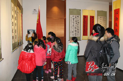 红网宁远站1月21日讯(通讯员 周飞箭 郑莹 徐艳)1月20日,宁远团县委联合宁远县青年创业商会组织宁远籍市青联委员代表、青年志愿者开展“春暖童心”——伴你“童”行城市微旅行活动,共同亲情陪伴15名进城务工人员子女,帮助他们更好的融入城市。首先,在特邀解说员的引导下,孩子们参观了宁远县“文化客厅”舜德书院,感受舜德文化。院内黄永玉十二生肖雕塑、石碑以及书法作品深深的吸引了孩子们,孩子们一边仔细听解说员讲解,一边看得津津有味,对源远流长的舜德文化表现出了浓厚兴趣。