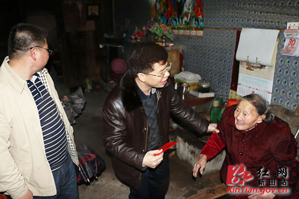 红网新田站2月1日讯(分站记者 钟伟锋)1月31日,湖南省新田县委常委、县委办主任蒋华,副县长李祥佐,在县委办、民政局、新隆镇等相关单位负责人陪同下,深入新隆镇石古凤、大坪头、龙会塘、东溪等村,走访慰问困难群众、老党员和抗战老兵,向他们致以新春祝福和节日问候,并送上慰问金。