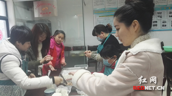雨花区东山街道黎郡社区位于武广高铁核心片区,是拆迁农民集中安置小区,有居民1.6万余人。这些拆迁户“洗脚上岸”后,由农民向市民转型。东山街道计生协会、黎郡社区计生协会为浓厚新春气氛,增进居民之间的感情,筹划举办了这场“幸福黎郡、温暖小年”活动,猜灯谜、送春联、包饺子,红红火火迎新年。