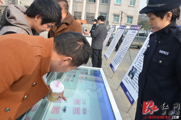 群众在观看赃物展柜