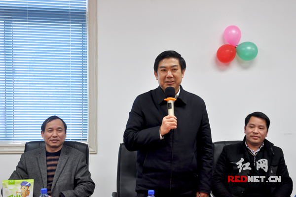 江永县委书记冯德校(中)出席联谊活动并致新春贺辞。