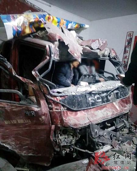 红网常德站3月18日讯(分站记者 郑江晖)3月17日18时许,在常德市石门县南北镇清官渡的盘山公路上,一辆大货车突然失控,撞进一村民家中。货车司机和乘客受轻伤,所幸事发时两间房中无人,没有造成更多人员伤亡。目前,事故原因正进一步调查中。