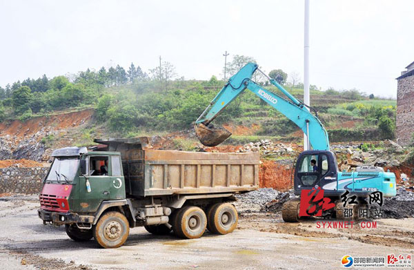 施工车正在清理渣土。