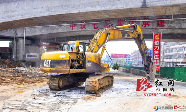 破路机正在施工。
