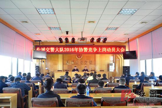 红网常德站4月18日讯(通讯员 成浩)4月18日,常德市鼎城区公安局交警大队召开协警双向选择竞争上岗动员大会,该大队聘用的40多名协警将通过双向选择竞争上岗的方式重新确定工作岗位。