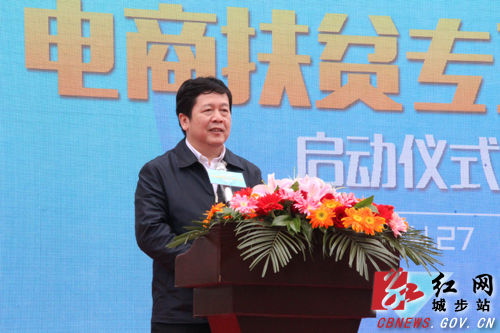 罗建南在致辞中指出,近年来,在湖南省商务厅、省扶贫办和各级各部门的支持下,城步县委、县政府顺势而为大力发展电子商务,加快推进电商扶贫,初步走出了一条利用电子商务促农增收的电商扶贫新路子。通过电商扶贫,全县范围内形成了“人人谈电商,个个争创业”的全民创业浪潮,涌现了一大批发展良好的电子商务企业和电商产品,打造了两家本土电商平台、15家电商企业。下一步,全县将按照电商扶贫的总体思路,进一步解放思想,更新观念,加快探索电商助推扶贫的新途径、新方法,努力构建线“上线下互动、农户客户直通、增收增智并举”的电商格局,让更多的贫困群众通过电商扶贫致富奔小康。