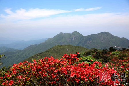 湖南省临武县西瑶绿谷国家森林公园天鹅潭景区杜鹃绽放